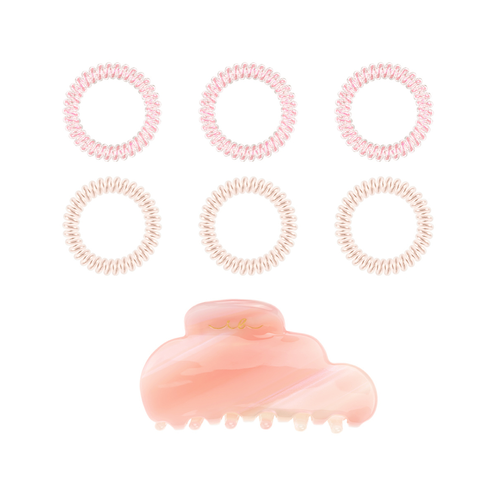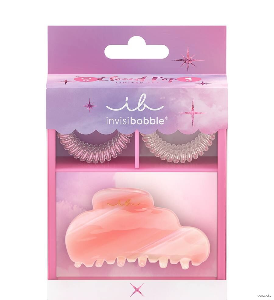 Внутри – резиночки Slim в розовом и жемчужном оттенках (6 шт.), а также очаровательный крабик Clipstar в форме облачка.