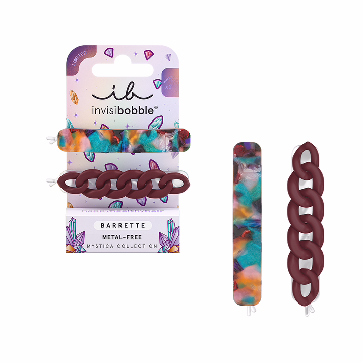 Barrette Mystica The Rest is Mystery – это две контрастные заколочки: матовая в бордовом цвете и глянцевая с разноцветным узором. Комбинируйте их в образах, чтобы подчеркнуть свою индивидуальность.