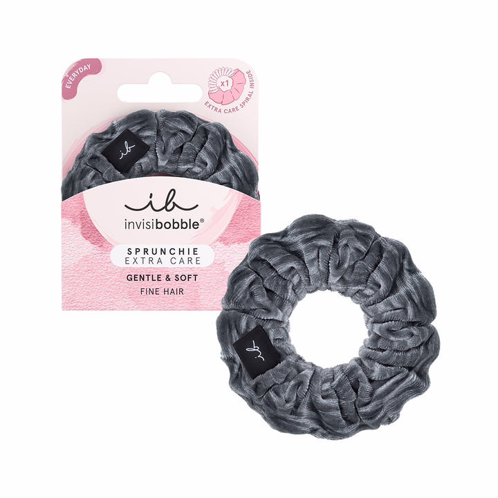 Sprunchie Extra Care создана специально для бережной фиксации тонких волос. Секрет – в эластичной резиночке Extra Care, спрятанной внутри.
