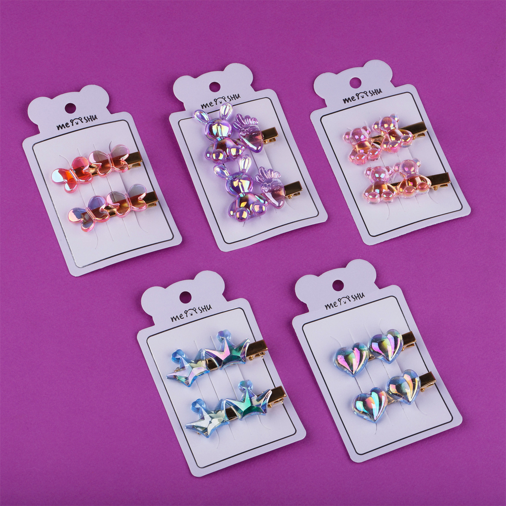 Милые заколки представлены в различных цветовых решениях и формах, что позволяет подобрать идеальный вариант для каждого наряда и случая. Такой комплект точно понравится стильным девочкам.