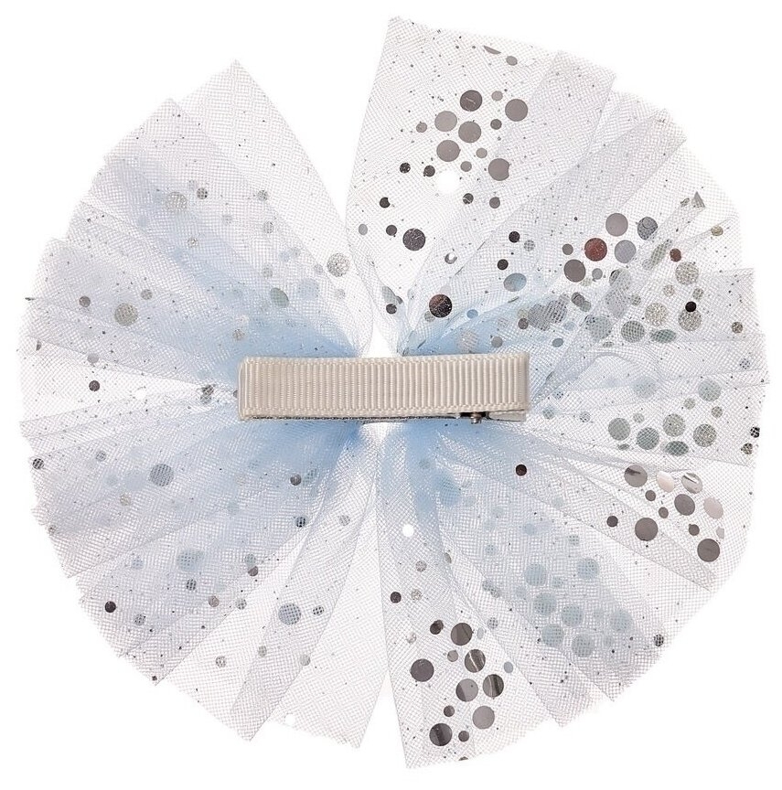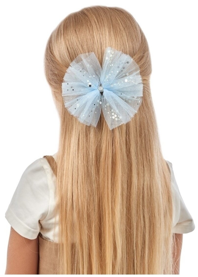 Заколка в виде банта с блестками, поистине роскошный аксессуар, который превратит любой выход из дома в настоящий праздник. Легкая и удобная заколка зажим не причинит вреда нежным детским волосам и позволит в считанные минуты создавать очаровательные прически.