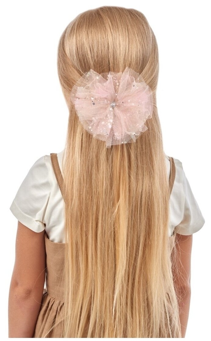 Заколка в виде банта с блестками, поистине роскошный аксессуар, который превратит любой выход из дома в настоящий праздник. Легкая и удобная заколка зажим не причинит вреда нежным детским волосам и позволит в считанные минуты создавать очаровательные прически.