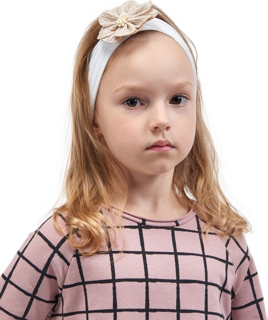 Повязка для волос – легкая и минималистичная, выполнена из мягкого тканого материала нежного белого оттенка и представляет собой эластичную полоску ткани, украшенную симпатичным цветочком. Пусть ваша кроха с ранних лет привыкает быть в центре внимания!