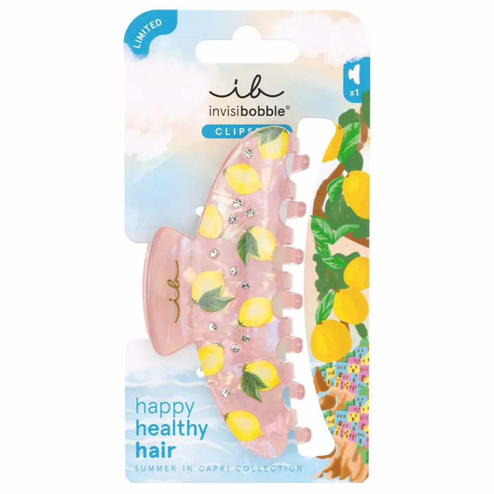 Invisibobble Clipstar Summer in Capri Charme – трендовый аксессуар с лимонным принтом. Неслучайно именно этот фрукт украшает заколку: сицилийский лимон – символ итальянской кухни и культуры. Крабик позволяет завершить образ всего за несколько секунд: пара движений – и прическа готова! Укладка с небрежно выпущенными прядями у лица, элегантный завиток или романтичная "мальвинка" – заколка надежно при этом бережно зафиксирует волосы в любой прическе в течение всего дня. Подходит для всех типов волос и любых образов.