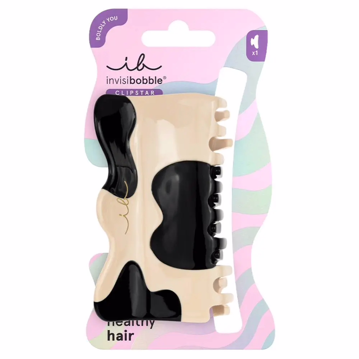 Девушка ковбоя или героиня жаркого ранчо? Почувствовать атмосферу Дикого Запада поможет заколка-крабик invisibobble Clipstar Cowgirl Dream с бежево-черным принтом, имитирующим окрас коровы. Крабик позволяет завершить образ всего за несколько секунд: пара движений – и прическа готова! Укладка с небрежно выпущенными прядями у лица, элегантный завиток или романтичная "мальвинка" – заколка надежно при этом бережно зафиксирует волосы в любой прическе в течение всего дня. Подходит для всех типов волос и любых образов.