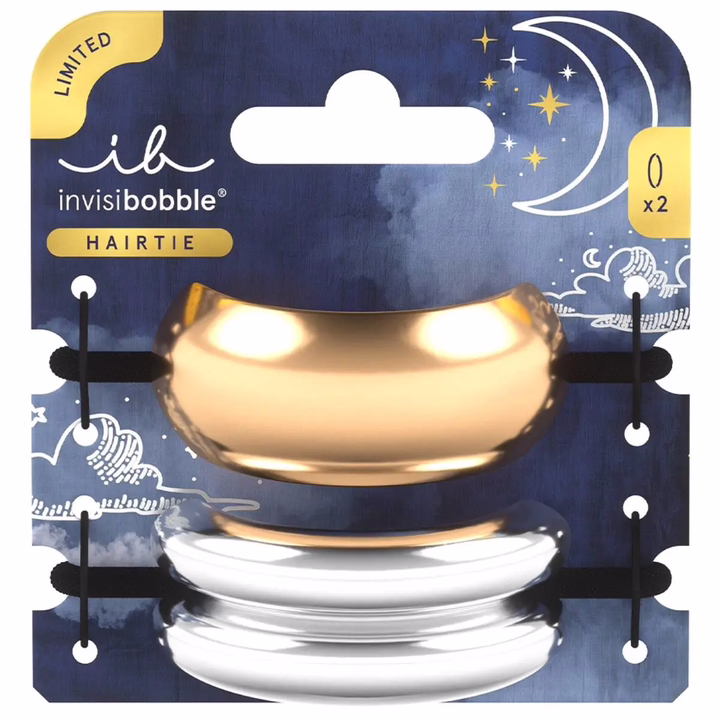 Invisibobble Hair Tie Eclipse Aurora Radiance – это два стильных металлических украшения для хвоста. Внешнее декоративное полукольцо красиво обрамляет волосы, в то время как эластичная резинка, спрятанная под ним, бережно фиксирует прическу. Одно из украшений золотого цвета, а другое – серебряного. Как и все аксессуары Invisibobble, резиночки Hair Tie обеспечивают фиксацию прически в течение всего дня, не доставляя дискомфорт и не повреждая волосы.