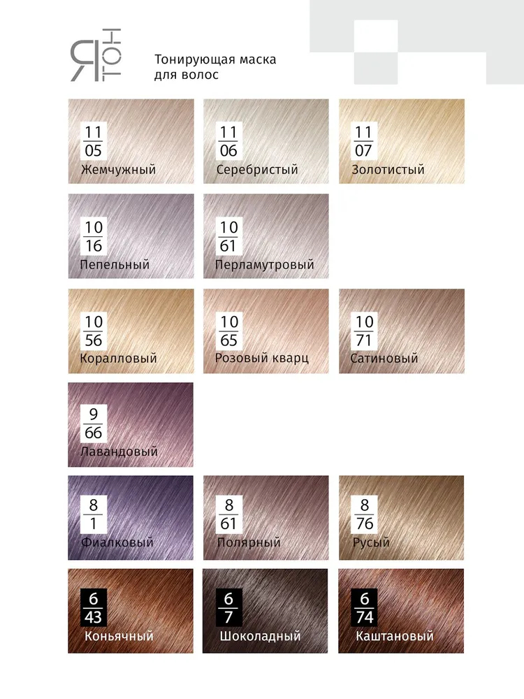 Тонирование и интенсивный уход за волосами. Тонирующая маска "ЯТон" придает волосам желаемый оттенок, увлажняет, кондиционирует, усиливает блеск волос. Создана для окрашенных и натуральных волос.