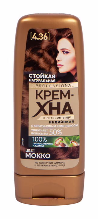 Инновационная усиленная формула на основе индийской хны, с маслами арганы, жожоба и целебными экстрактами глубоко проникает в структуру волос, окрашивает в глубокий, насыщенный и сияющий цвет. Крем-хна безупречно закрашивает седину!