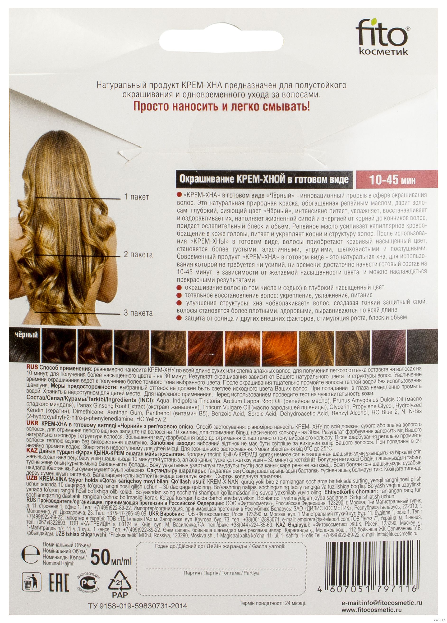 | Изготовитель | ООО "Фитокосметик", Россия, 140108, Московская обл., Раменский р-н, г. Раменское, ул. Михалевича, д. 49, оф. 310 |