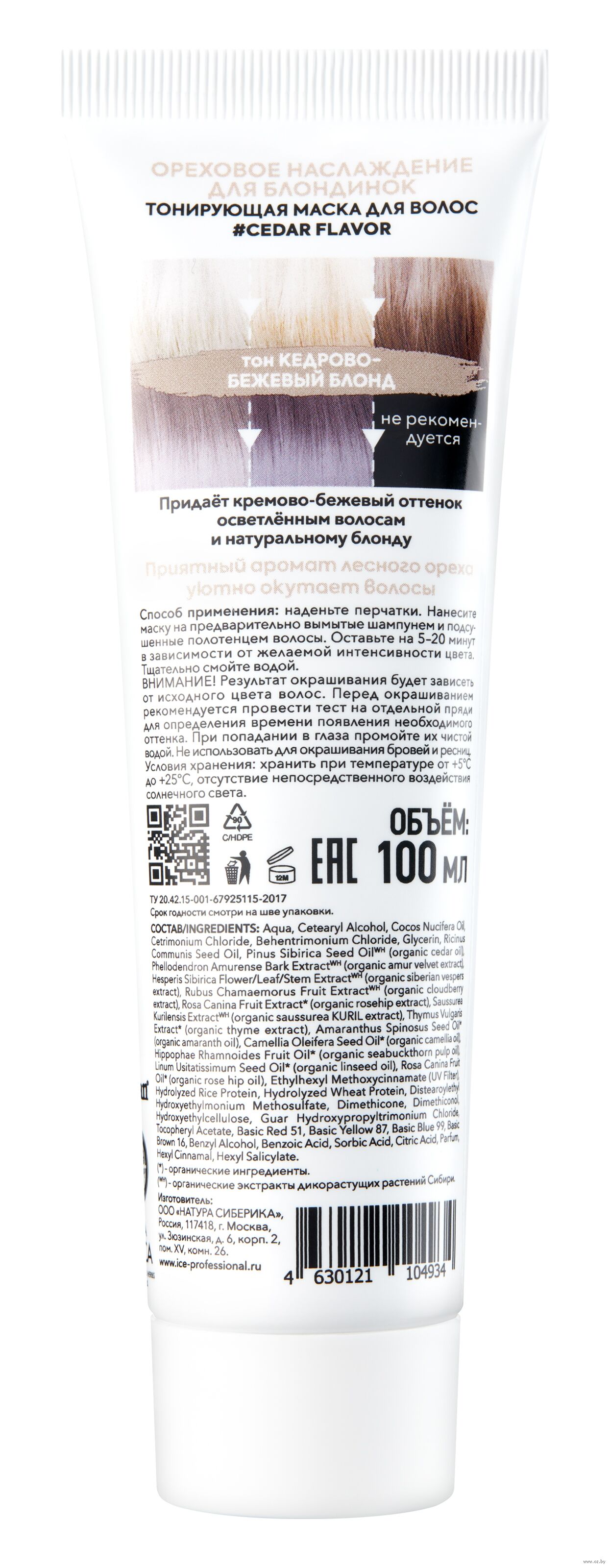 Тонирующая маска для волос Cedar flavor. Тон Кедрово-бежевый блонд. Придаёт кремово-бежевый оттенок осветленным волосам и натуральному блонду. Приятный аромат лесного ореха уютно окутает волосы.