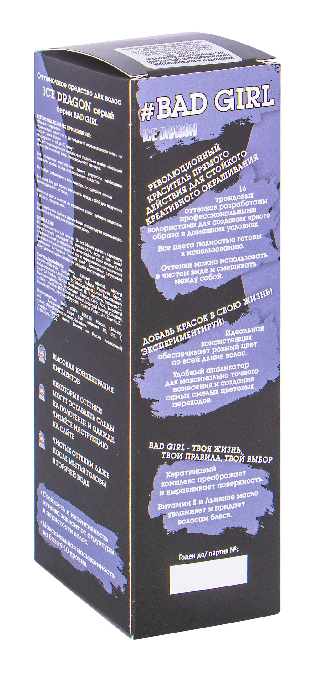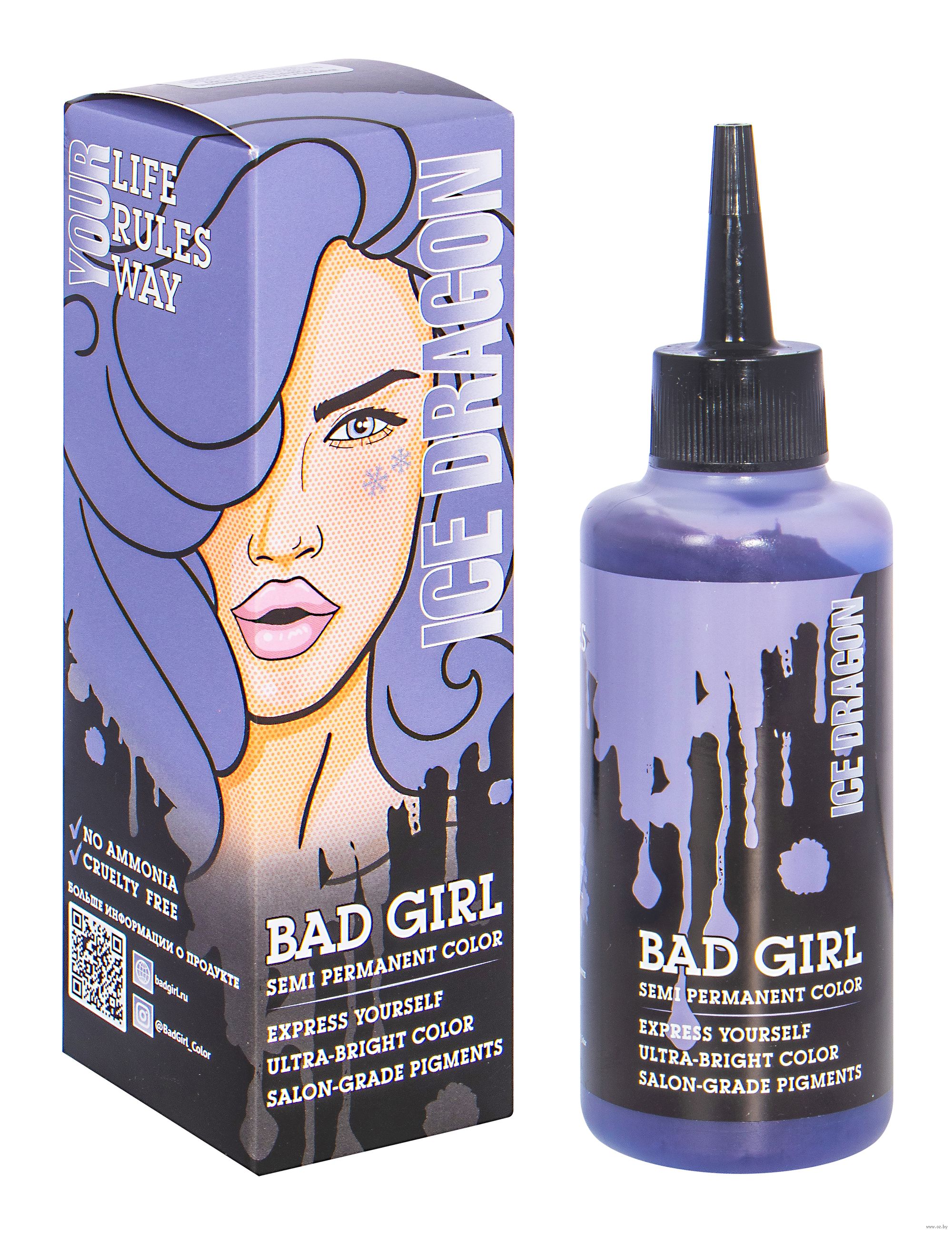 "Bad Girl" – коллекция пигментов прямого действия, обеспечивающих стойкое цветное окрашивание. Можно смешивать оттенки между собой, а также корректировать их интенсивность, от экстра ярких до сдержанных пастельных. Цвет держится до 100 дней, но при этом легко удаляется с волос, если нужно сменить образ. Идеальная консистенция обеспечивает ровный цвет по всей длине волос. Удобный аппликатор позволяет максимально точно наносить краситель. Теперь можно создавать самые смелые цветовые переходы.