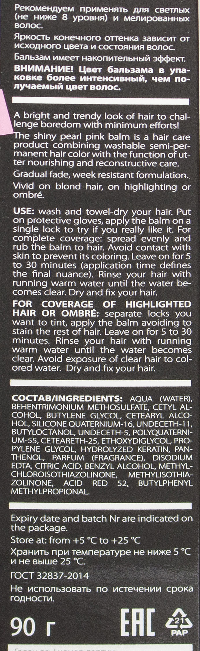 Бальзам не содержит агрессивных компонентов (аммиака, оксидантов) и может использоваться с неограниченной частотой. Формула средства не требует смешивания и очень проста в использовании. Волосы выглядят мягкими и живыми, а цвет – ярким и дерзким!