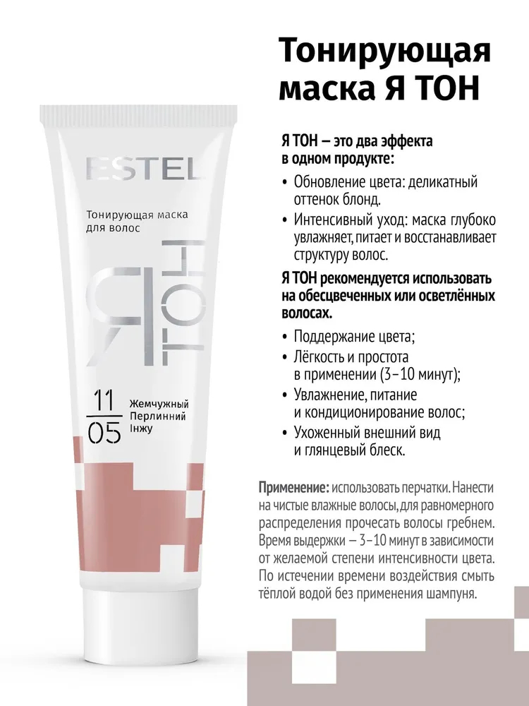Тонирующая маска "Я ТОН" – это также восстановление волос. Сбалансированный состав с активными веществами позволяет получить не только обновленный внешний вид волос, но и восстановление их структуры на глубоком уровне.