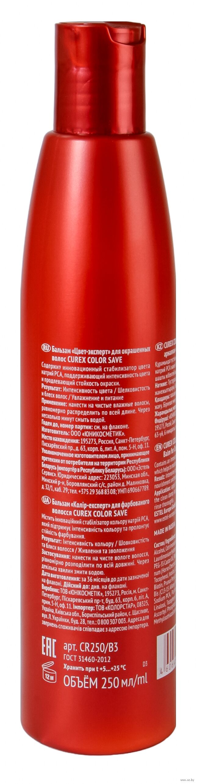 Бальзам для окрашенных волос Estel Curex Color Save содержит инновационный стабилизатор цвета натрий PCA, поддерживающий интенсивность цвета и продлевающий стойкость окраски. Провитамин В5, витаминный комплекс и масло персика активно увлажняют и питают, придают шелковистый блеск окрашенным волосам.