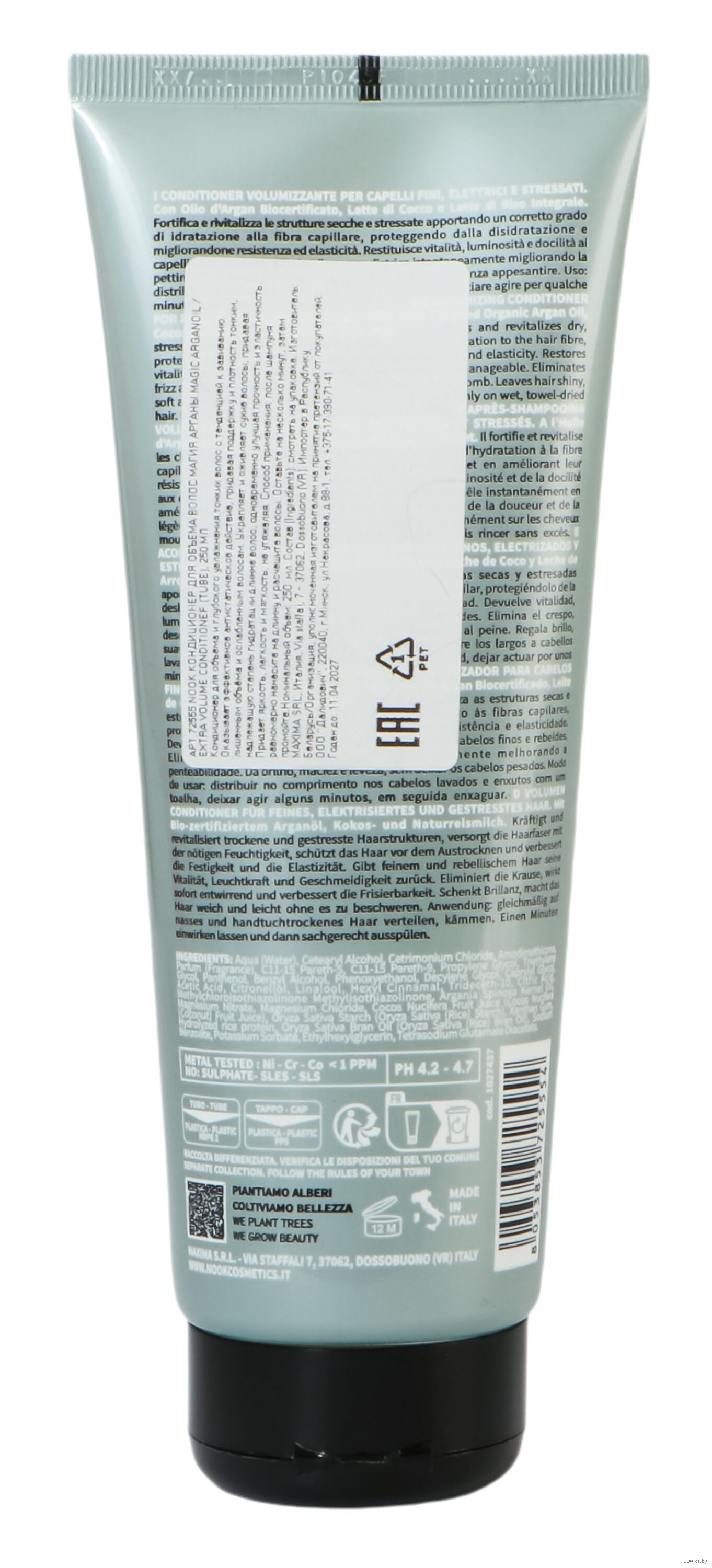 Масло арганы, кокосовое и рисовое молочко защищают пряди от негативных факторов окружающей среды, питают, борются с ломкостью и сечением кончиков.