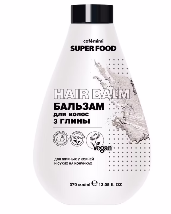 Aqua, Cetearyl Alcohol (из Кокосового масла), Glyceryl Stearate, Behentrimonium Chloride, Phyllantius Emblica (Amla) Oil (масло Амлы), Panthenol (провитамин В5), Vegetable Glycerin (растительного происхождения), Kaolin (Red Clay) (красная Глина), Kaolin (White Clay) (белая Глина), Montmorillonite & Illite (Blue Clay) (Голубая Глина), Hydroxypropyl Guar, Hydroxypropyl Guar Hydroxypropyltrimonium Chloride, Charcoal (Бамбуковый древесный уголь), Ceteareth-20, Parfume, Benzyl Alcohol, Benzoic Acid, Dehydroacetic Acid, Sodium Hydroxide, Linalool.