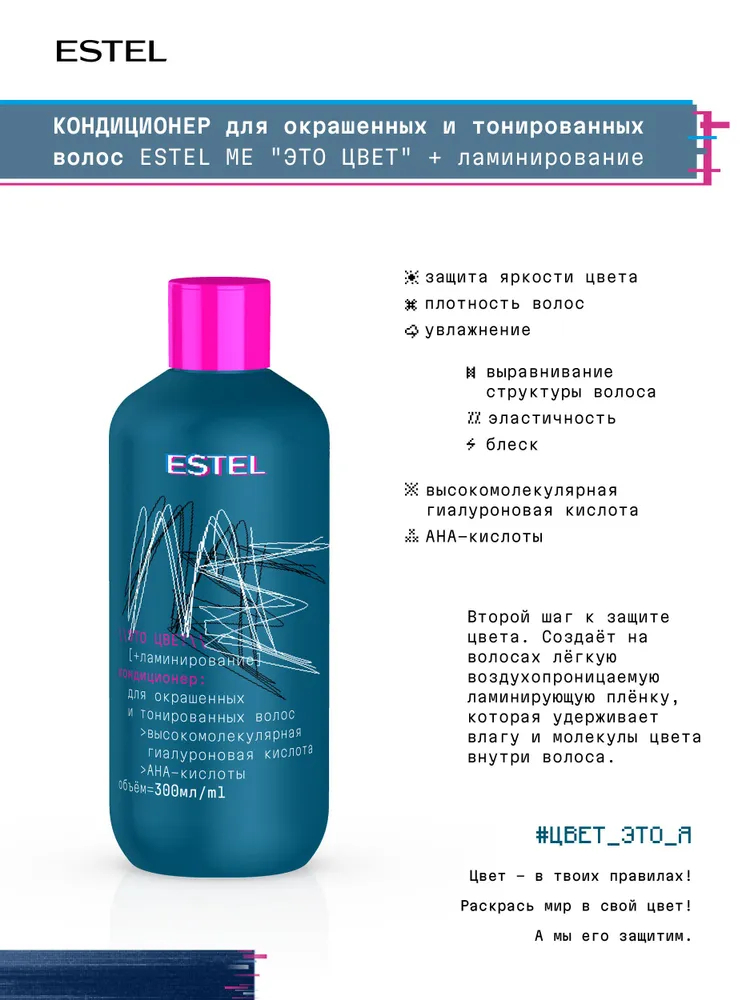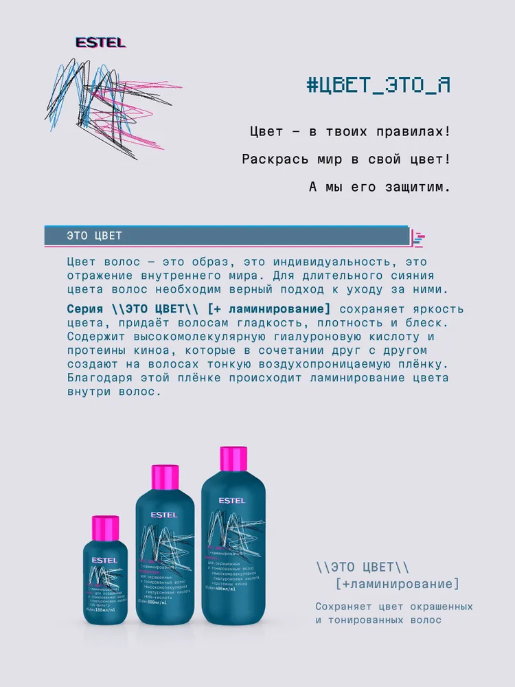 Второй шаг к защите цвета. Создает на волосах лёгкую воздухопроницаемую ламинирующую пленку, которая удерживает влагу и молекулы цвета внутри волоса.