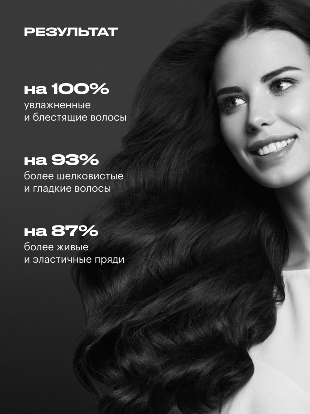 100% натуральное органическое марокканское масло арганы интенсивно питает волосы, придаёт им зеркальный блеск и мягкость. Протеины японского шёлка увлажняют и защищают волосы от пересушивания, придавая им гладкость и шелковистость. 3D-керамиды проникают внутрь волоса, предотвращая ломкость и сечение, делают волосы эластичными и упругими. Био масло карите восстанавливает волосы по всей длине, обеспечивая надёжную защиту от термо и УФ воздействий. Жидкий кератин залечивает повреждённую структуру волос и придаёт кристальное сияние.