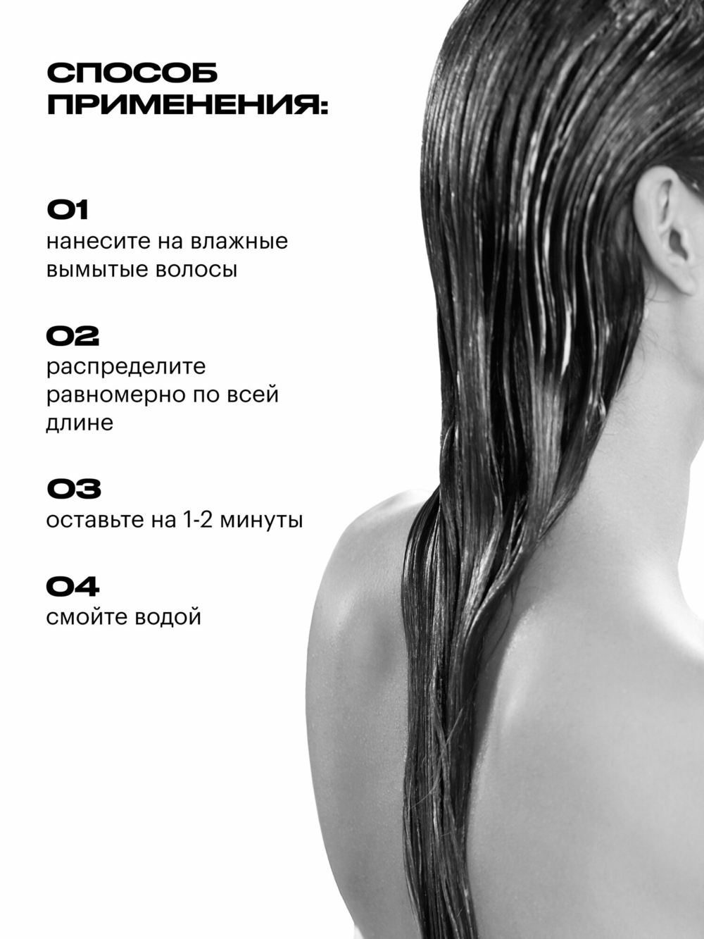 Нанесите бальзам на влажные вымытые волосы, распределите равномерно по всей длине, оставьте на 1-2 минуты, смойте водой.Состав