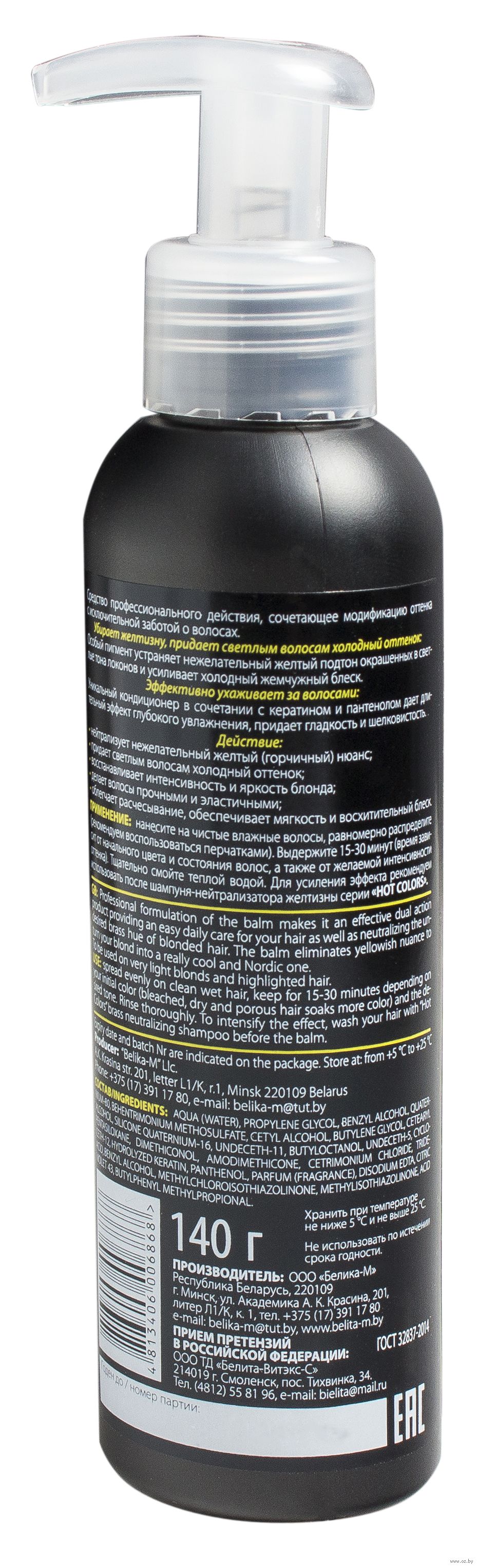 Бальзам двойного действия сочетает в себе коррекцию оттенка с исключительной заботой о волосах. Благодаря особому пигменту устраняется нежелательный желтый нюанс окрашенных в светлые тона локонов и усиливается холодный жемчужный блеск.