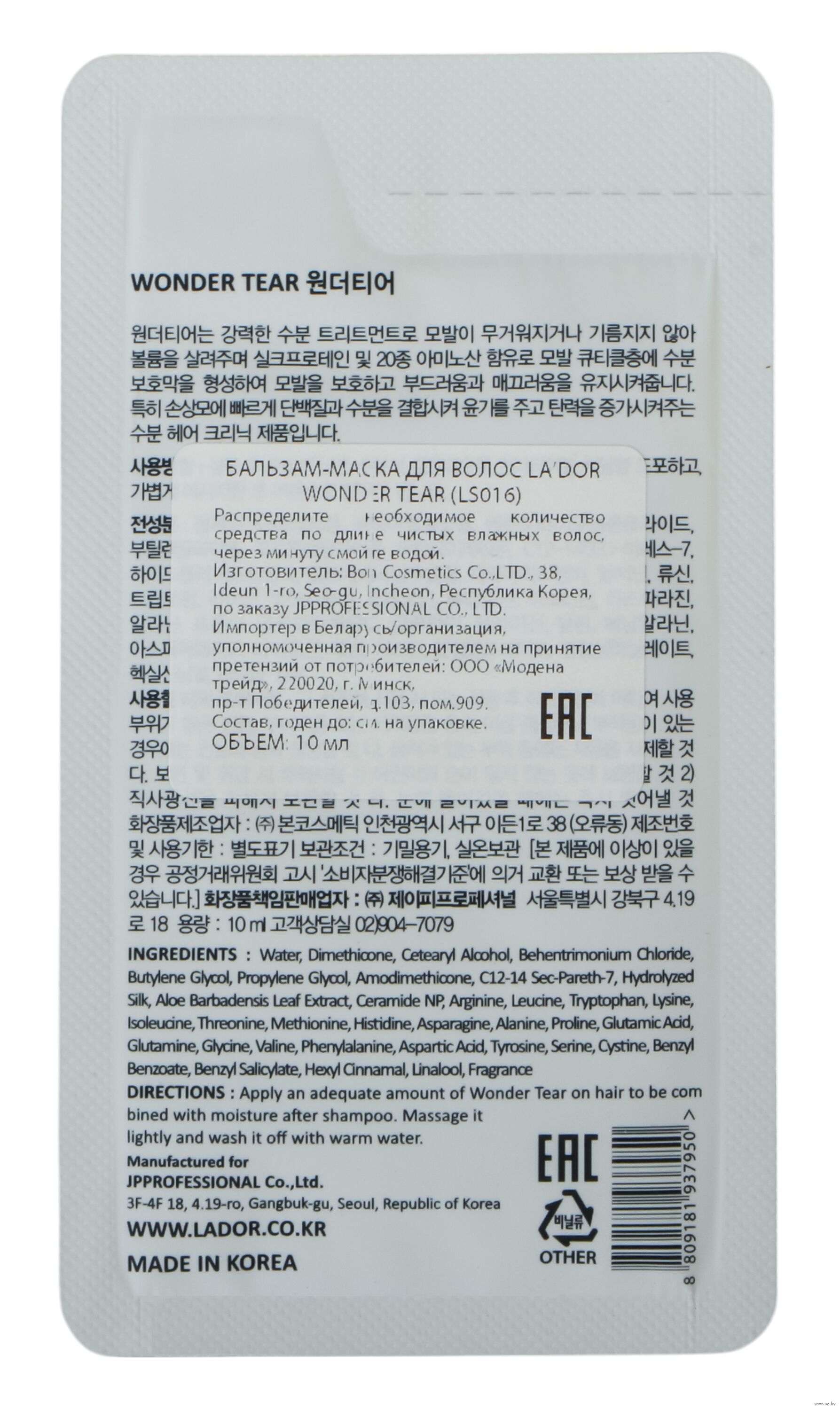 Бальзам-маска для волос "Wonder Tear" (10 мл)
