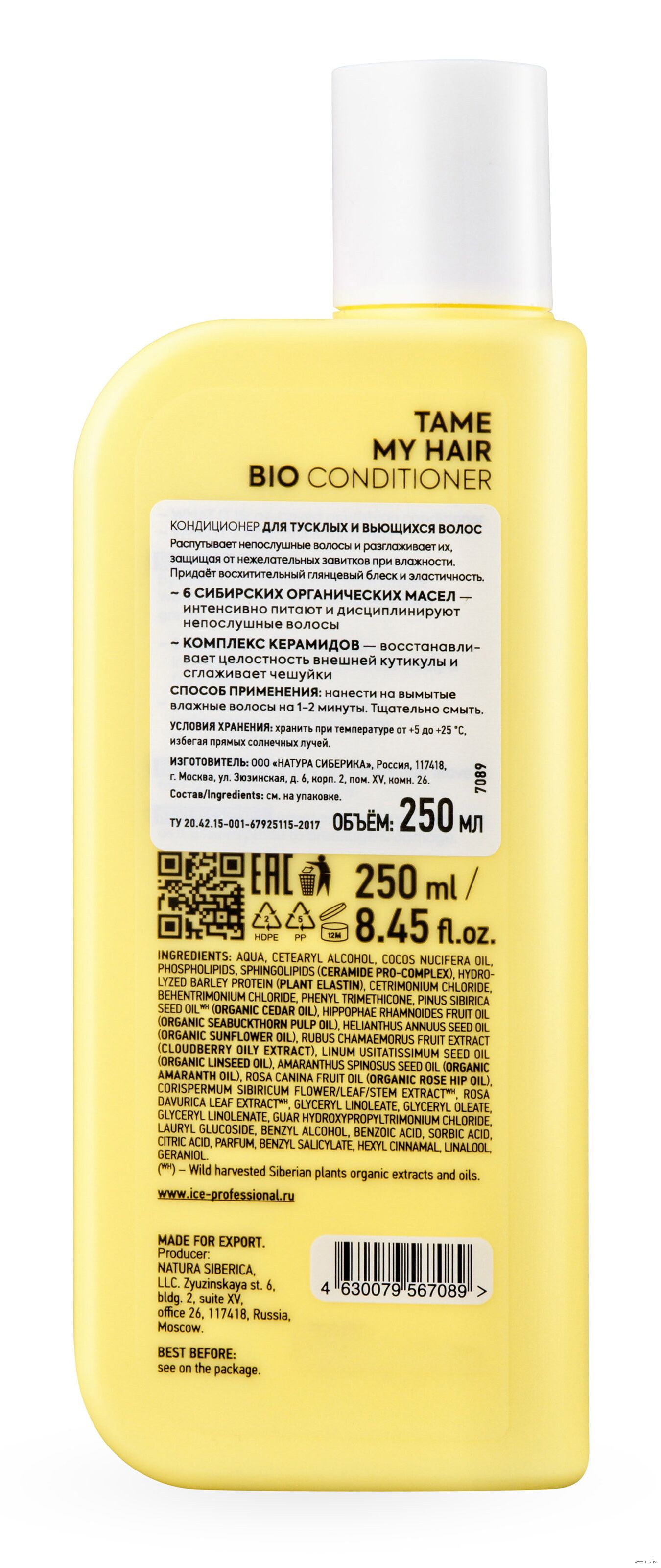 Aqua, Cetearyl Alcohol, Cocos Nucifera Oil, Phospholipids, Sphingolipids (Ceramide Complex), Hydrolyzed Barley Protein (Plant Elastin), Cetrimonium Chloride, Behentrimonium Chloride, Phenyl Trimethicone, Pinus Sibirica Seed Oilwh (Organic Cedar Oil), Hippophae Rhamnoides Fruit Oil (Organic Seabuckthorn Pulp Oil), Helianthus Annuus Seed Oil (Organic Sunflower Oil), Rubus Chamaemorus Fruit Extract (Cloudberry Oily Extract), Linum Usitatissimum Seed Oil (Organic Linseed Oil), Amaranthus Spinosus Seed Oil (Organic Amaranth Oil), Rosa Canina Fruit Oil (Organic Rose Hip Oil), Corispermum Sibiricum Flower/Leaf/Stem Extract Wh, Rosa Davurica Leaf Extract Wh, Glyceryl Linoleate, Glyceryl Oleate, Glyceryl Linolenate, Guar Hydroxypropyltrimonium Chloride, Lauryl Glucoside, Benzyl Alcohol, Benzoic Acid, Sorbic Acid, Citric Acid, Parfum, Benzyl Salicylate, Hexyl Cinnamal, Linalool, Geraniol.Мы используем файлы cookie для обеспечения удобства работы с сайтом и его контакта с пользователем.