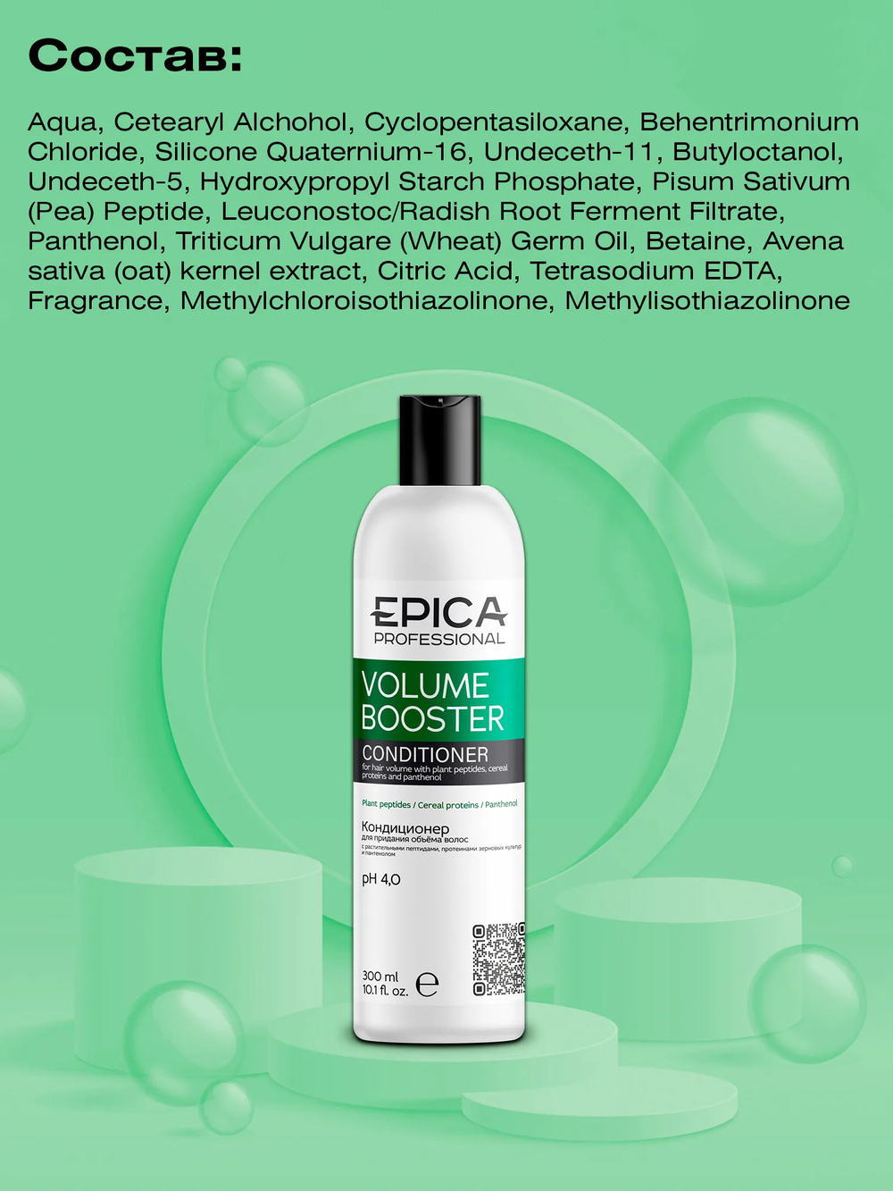 Кондиционер для придания объёма с растительными пептидами, протеинами зерновых культур и пантенолом бережно распутывает волосы и предотвращает их электризацию, облегчая расчёсывание и укладку. Антиоксиданты, входящие в состав растительных пептидов, увлажняют, дарят объем и толщину волосам, сохраняя здоровый и ухоженный вид.