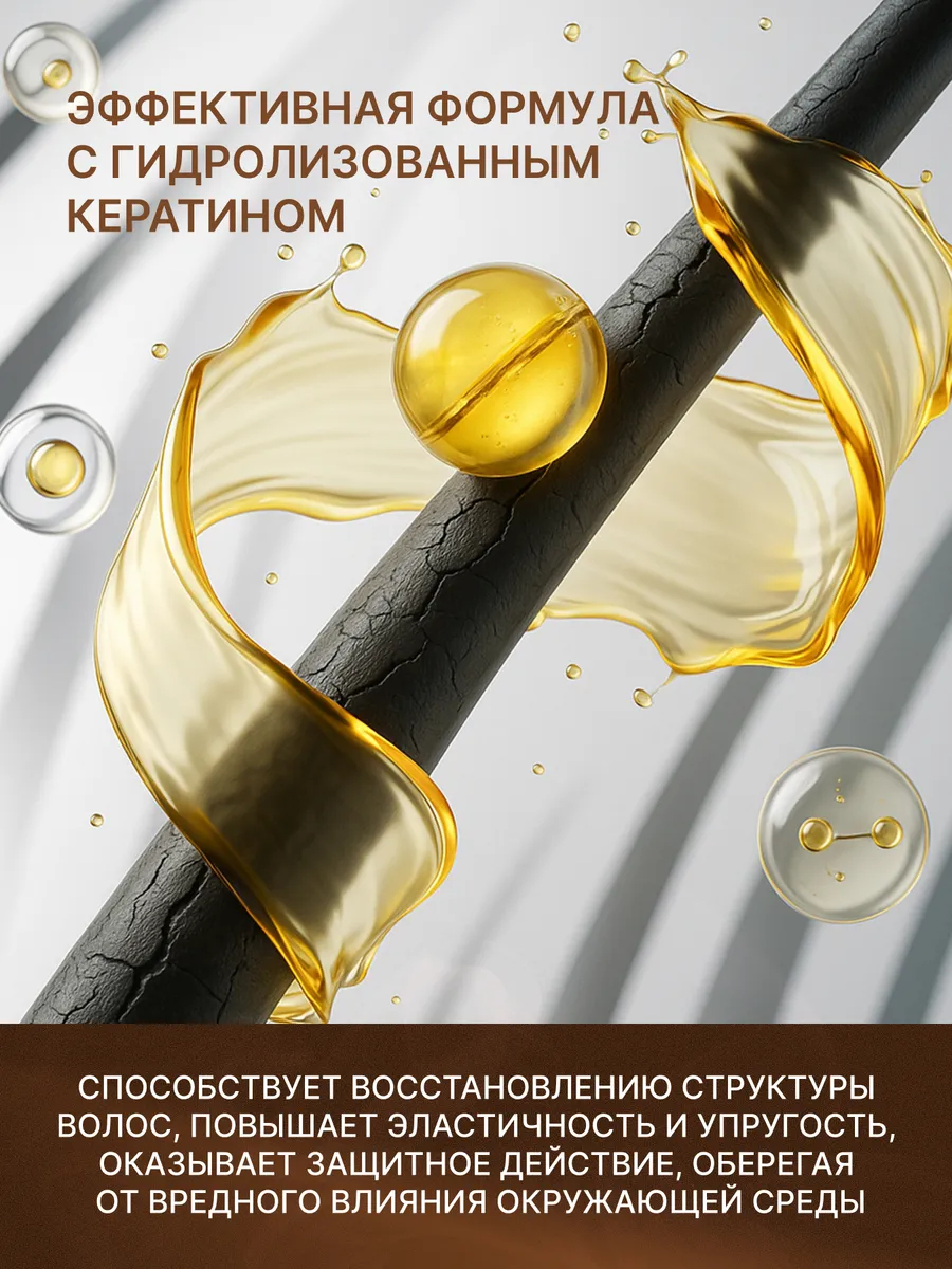 Гидролизованные кератин и протеины пшеницы восстанавливают, укрепляют структуру, заполняя поврежденные участки волос, делают их более плотными, объемными, блестящими, здоровыми, красивыми и ухоженными.