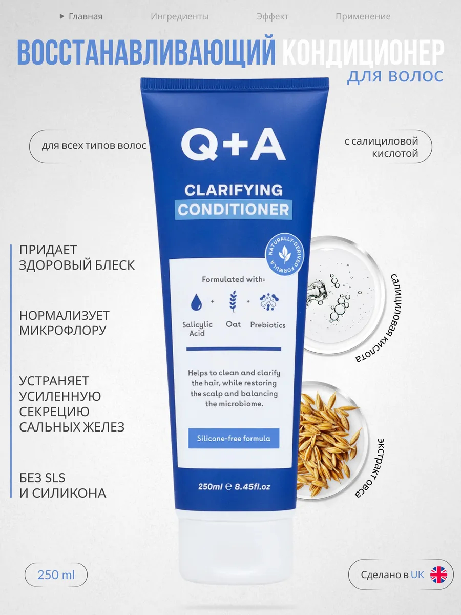 Линейка предназначена для интенсивного очищения волос и кожи головы. Кондиционер содержит салициловую кислоту, которая эффективно устраняет загрязнение и избыток себума, а также экстракт успокаивающего овса восстанавливает кожу и защищает микробиом от воздействия внешних раздражителей.