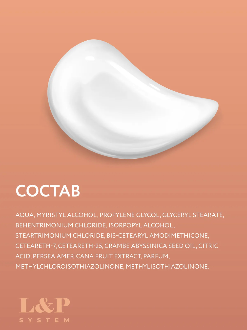 Aqua, Myristyl Alcohol, Propylene Glycol, Glyceryl Stearate, Behentrimonium Chloride, Isorpopyl Alcohol, Steartrimonium Chloride, Bis-Cetearyl Amodimethicone, Ceteareth-7, Ceteareth-25, Crambe Abyssinica Seed Oil, Citric Acid, Persea americana Fruit Extract, Parfum, Methylchloroisothiazolinone, Methylisothiazolinone.