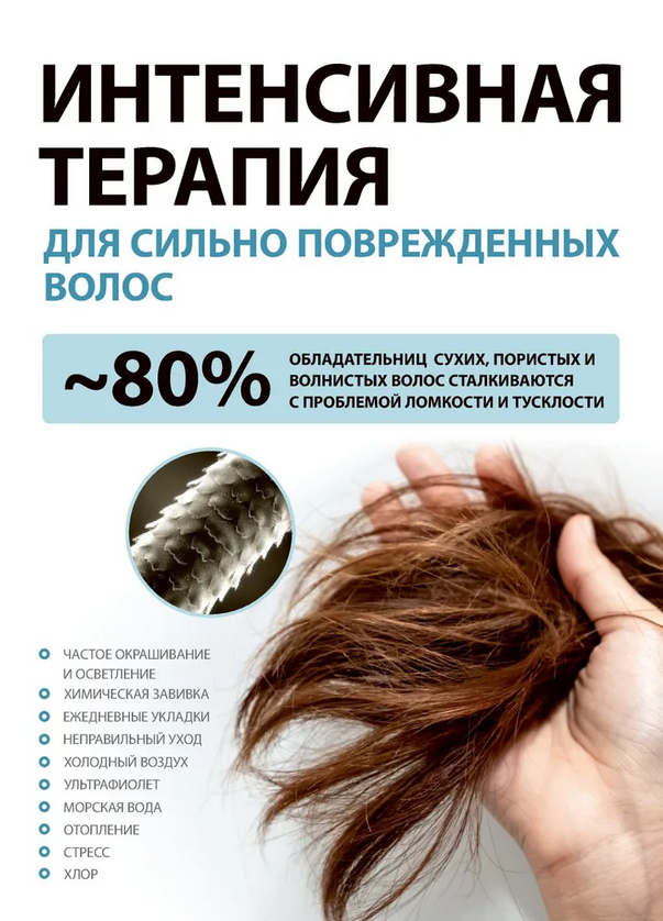 | Тип волос | Вьющиеся, непослушные, поврежденные, сухие |