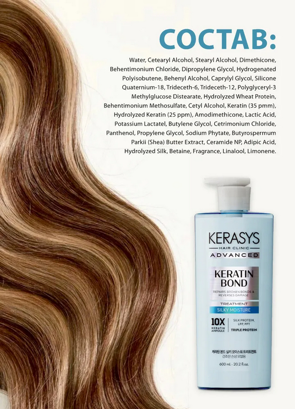 Water, Cetearyl Alcohol, Stearyl Alcohol, Dimethicone, Behentimonium Chloride, Dipropylene Glycol, Hydrogenated Polyisobutene, Behenyl Alcohol, Caprylyl Glycol, Silicone Quaternium-18, Trideceth-6, Trideceth-12, Polyglyceryl-3 Methylglucose Distearate, Hydrolyzed Wheat Protein, Behentimonium Methosulfate, Cetyl Alcohol, Keratin (35 pmm), Hydrolyzed Keratin (25 ppm), Amodimethicone, Lactic Acid, Potassium Lactatel, Butylene Glycol, Cetrimonium Chloride, Panthenol, Propylene Glycol, Sodium Phytate, Butyrospermum Parkii (Shea) Butter Extract, Ceramide NP, Adipic Acid, Hydrolyzed Silk, Betaine, Fragrance, Linalool, Limonene.Мы используем файлы cookie для обеспечения удобства работы с сайтом и его контакта с пользователем.
