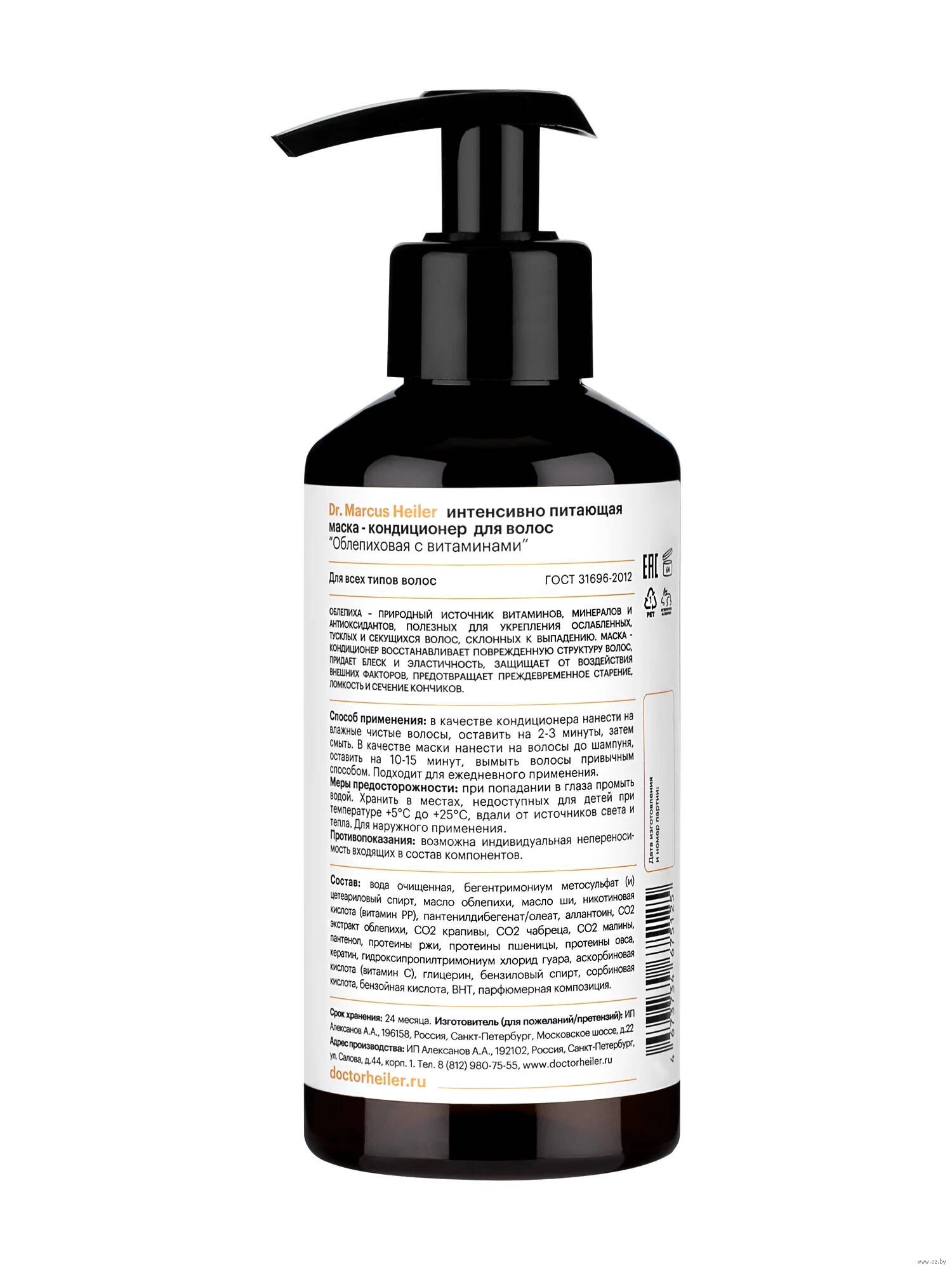 Вода очищенная, бегентримониум, метосульфат (и) цетеариловый спирт, масло облепихи, масло ши, никотиновая кислота (витамин РР), пантенилдибегенат/олеат, аллантоин, СО2 экстракт облепихи, СО2 крапивы, СО2 чабреца, СО2 малины, пантенол, протеины ржи, протеины пшеницы, протеины овса, кератин, гидкросилпропилтримониум хлорид гуара, аскорбиновая кислота (витамин С), глицерин, бензиловый спирт, сорбинова якислота, бензойная кислота, ВНТ, парфюмерная композиция.