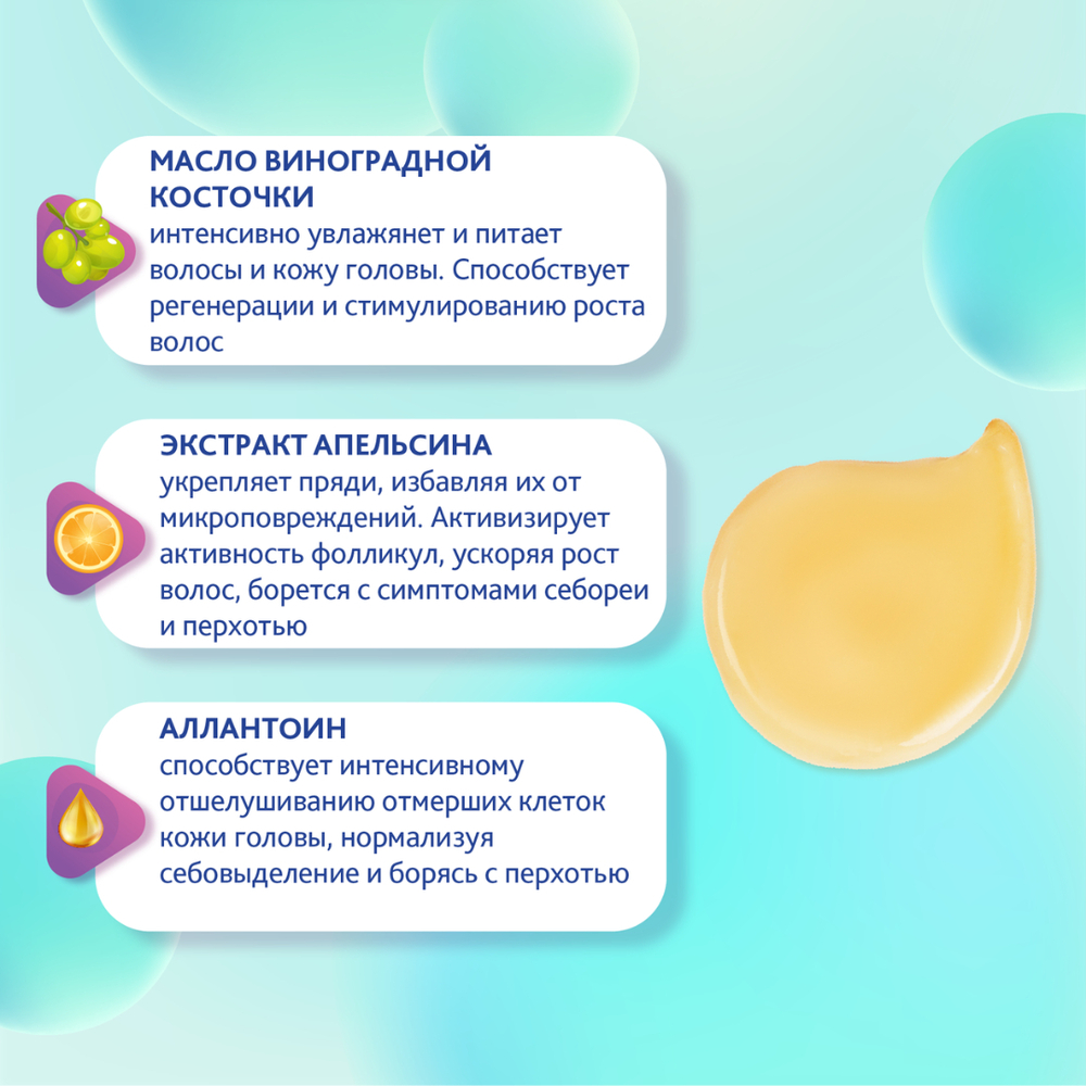 | Действие | Блеск, восстановление, питание, против выпадения, против перхоти, увлажнение, укрепление |