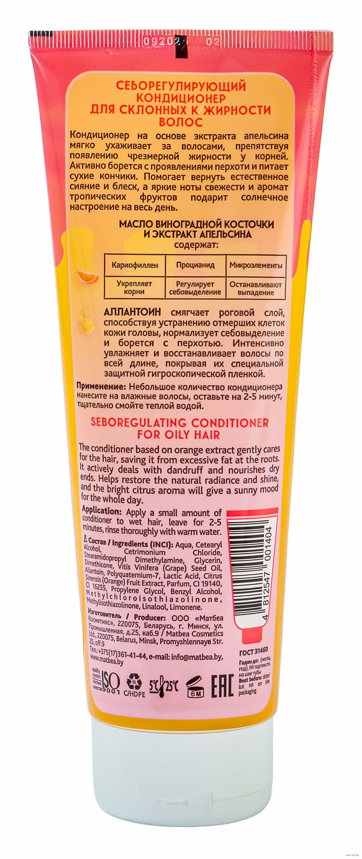 Кондиционер на основе экстракта апельсина, мягко ухаживает за волосами, препятствуя появлению чрезмерной жирности у корней. Активно борется с проявлениями перхоти и питает сухие кончики. Помогает вернуть естественное сияние и блеск, а яркие ноты свежести и аромат тропических фруктов подарит солнечное настроение на весь день.