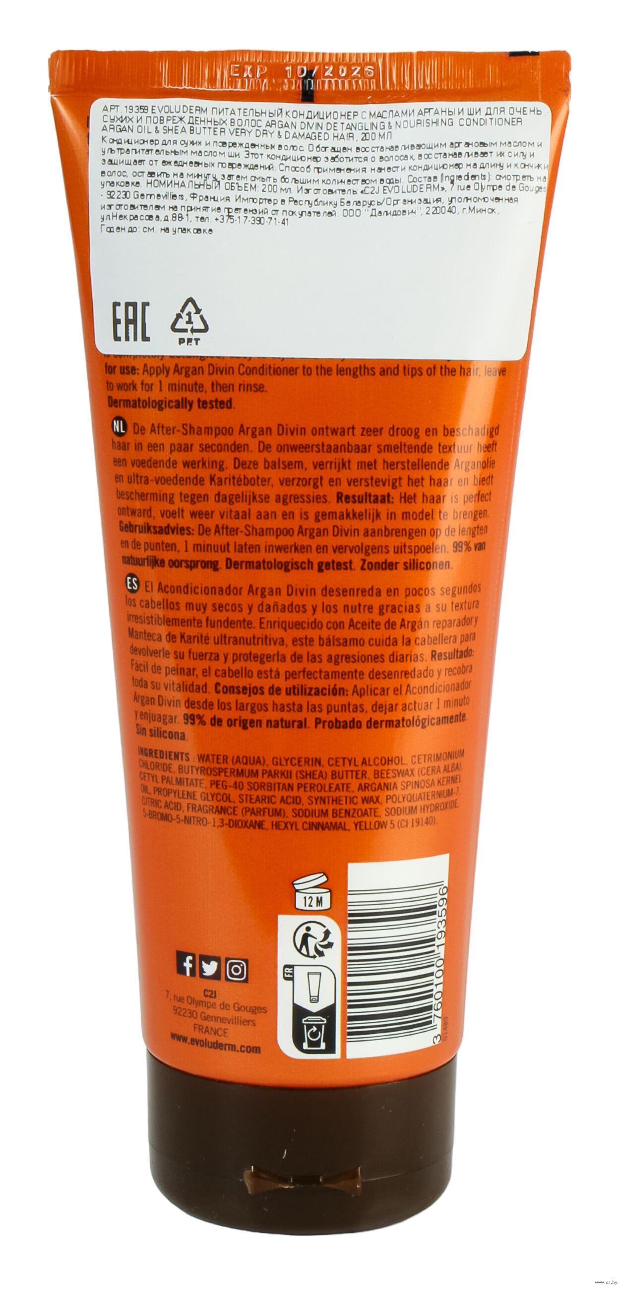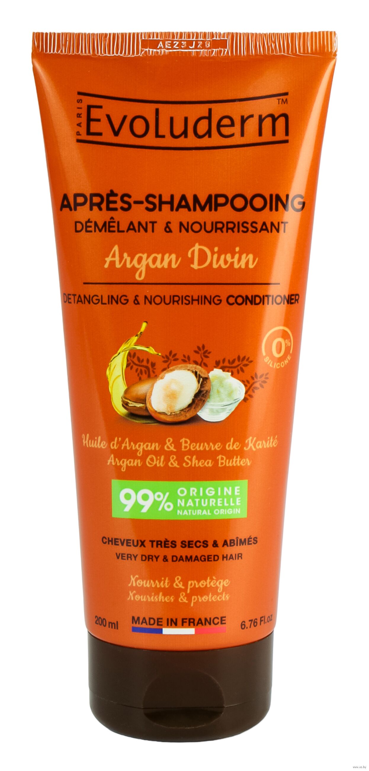 Не содержащий силикона и специально разработанный для очень сухих и поврежденных волос кондиционер "Argan Divin" для легкого расчесывания и ухода за волосами, обогащенный маслом арганы и маслом ши из Буркина-Фасо, глубоко питает волосы. Масло ши защищает и смягчает, а масло арганы восстанавливает, оживляя волокна волос. Его сладкий аромат окутывает ваши волосы и переносит вглубь Востока.