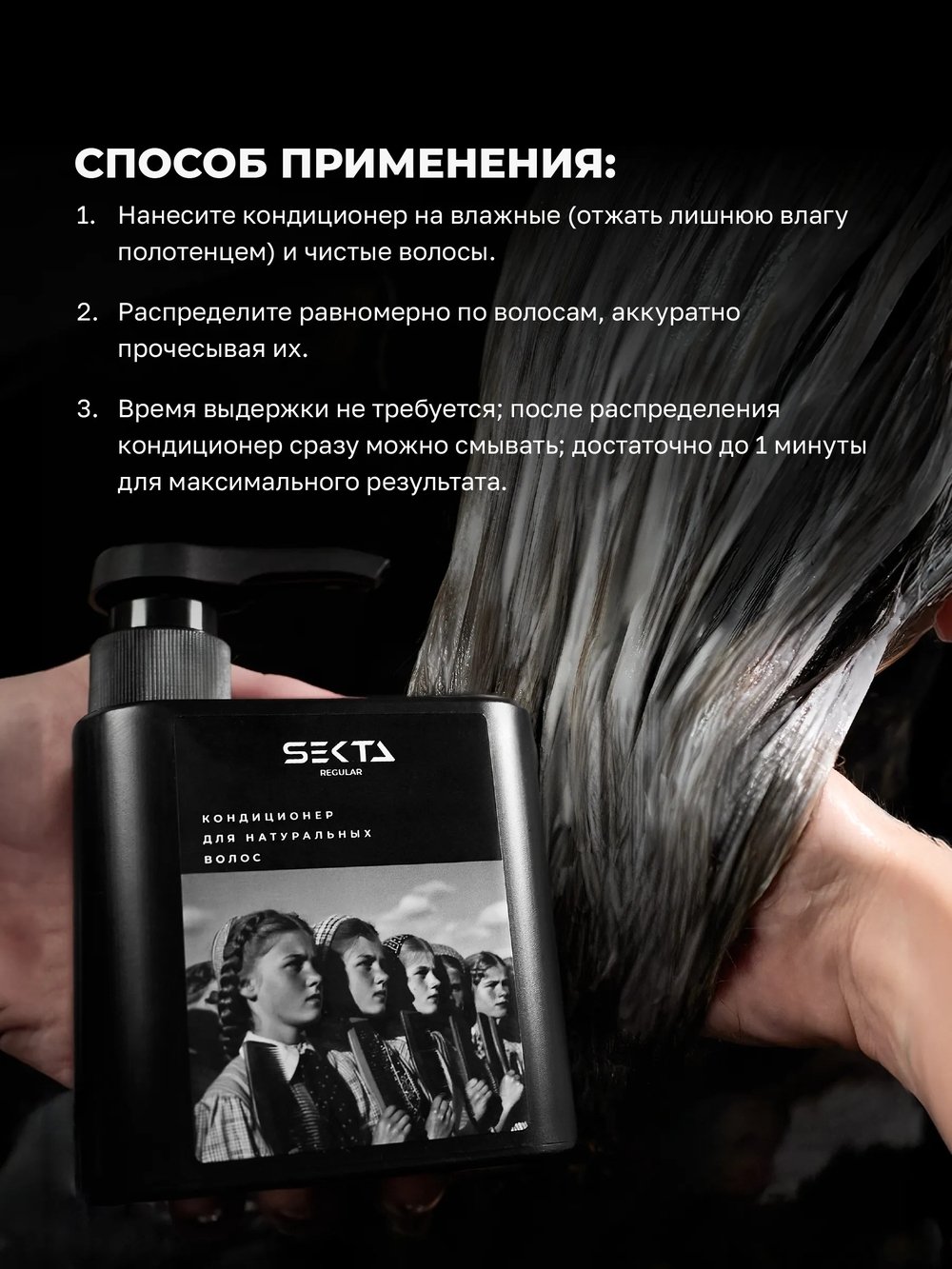 Кондиционер разработан специально для работы с натуральными волосами, чтобы завершить процедуру мытья и обеспечить дополнительное уходовое действие.