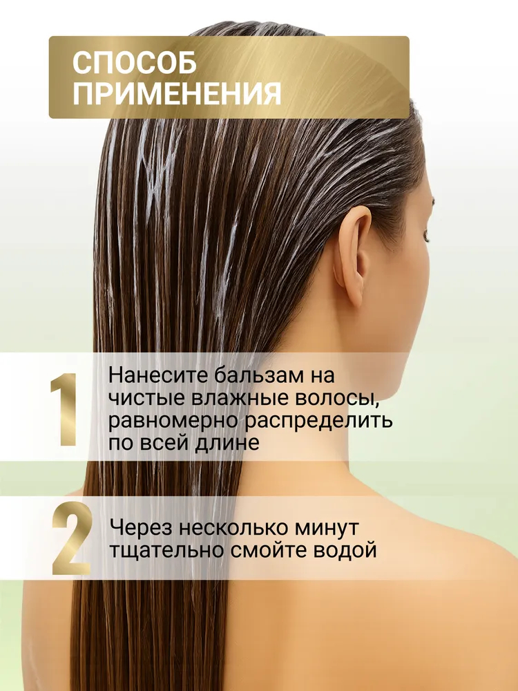 Нанести на чистые влажные волосы, равномерно распределить по всей длине. Через несколько минут смыть водой.Состав