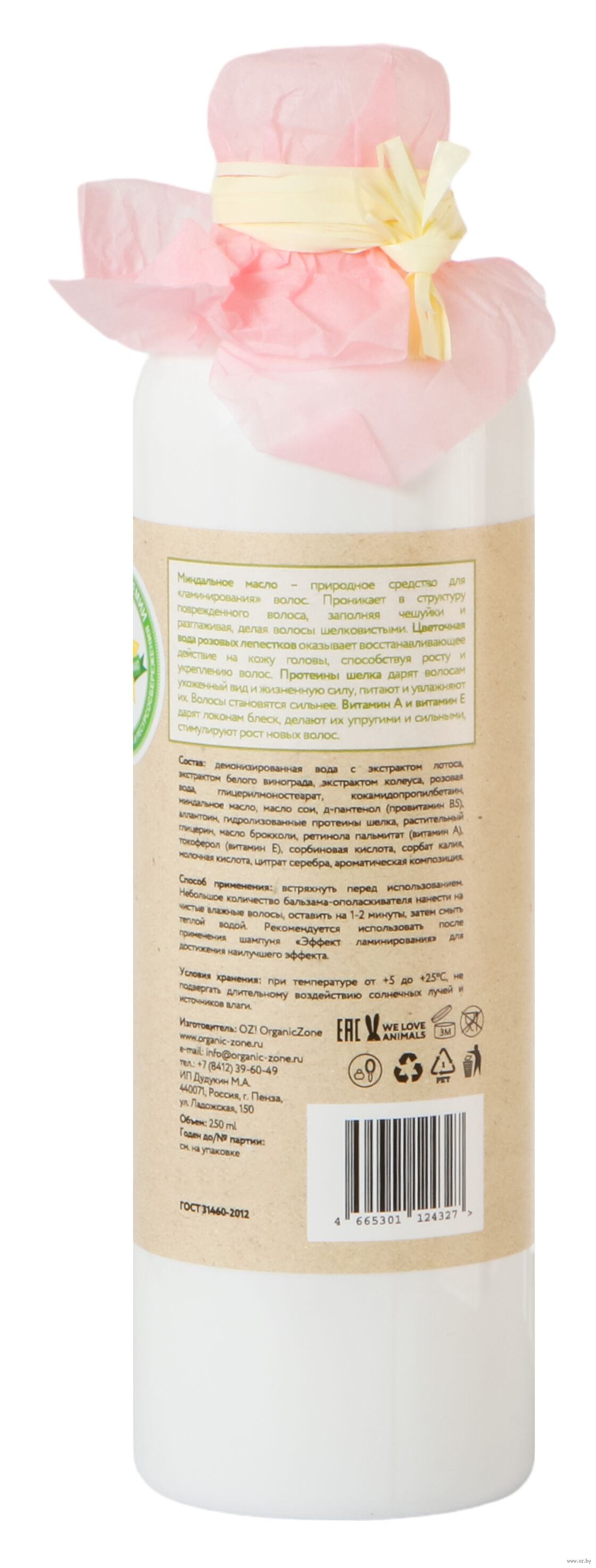 | Активные компоненты | Комплекс масел, пантенол (витамин в5), протеины шелка |