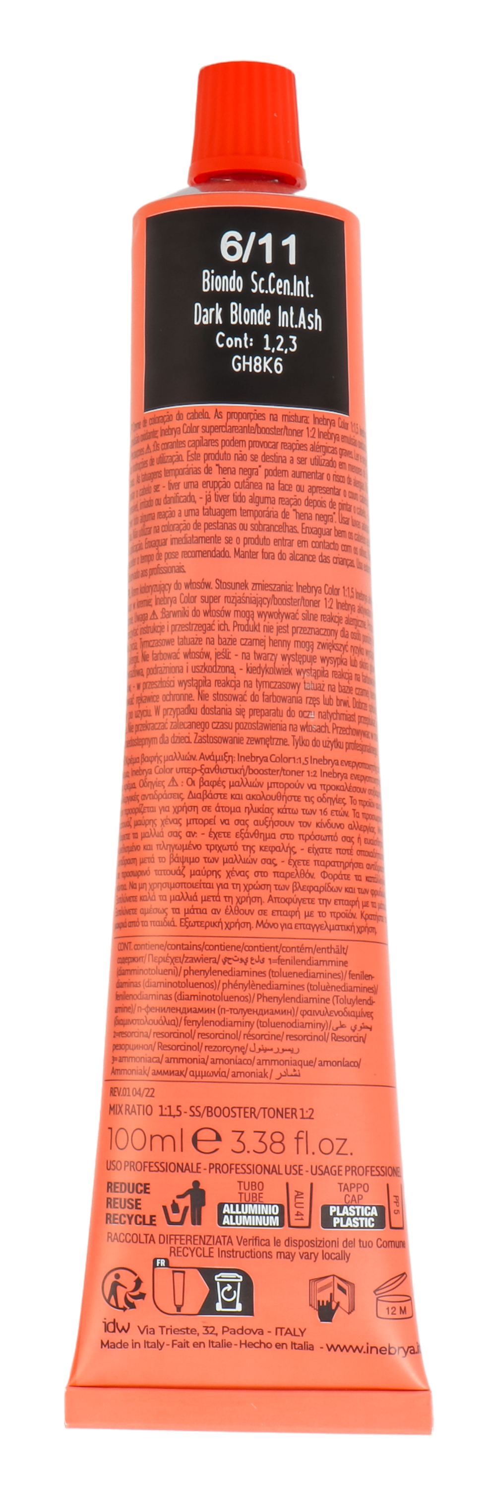 Крем-краска для волос Inebrya Color – перманентный краситель для волос с низким содержанием аммиака (до 2%).