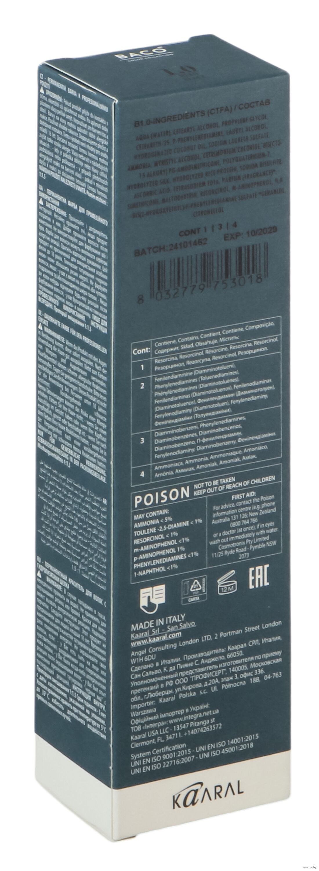 | Импортер | ООО МиланКосметикс, 220114, Республика Беларусь, г. Минск, ул. Филимонова, дом № 55, корпус 3, офис 309, помещение 13 |