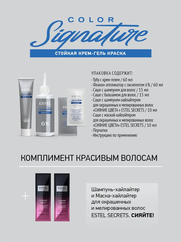Крем-гель краска для волос Estel Color Signature – результат сотрудничества науки и творчества: экспертов лаборатории Estel и колористов.