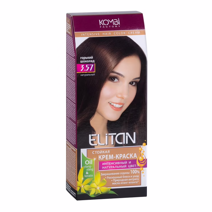 Входящее в состав краски масло иланг-иланга питает, восстанавливает волосы. Способствует стойкому закреплению пигмента по всей глубине коркового слоя. Устраняет посеченность и шероховатость волоса, тем самым улучшая его оптические свойства (блеск). Стойкая крем-краска Элитан Intensive Hair Color Cream содержит новую технологию окрашивания Brilliant Shine c масом ylang-ylang. Фотоны интенсивно отражаются от каждой микрочастицы пигмента, формируя сияющий блеск и обеспечивая полную цветопередачу.
