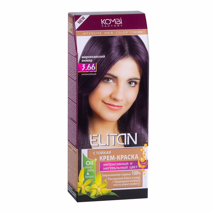 Входящее в состав краски масло иланг-иланга питает, восстанавливает волосы. Способствует стойкому закреплению пигмента по всей глубине коркового слоя. Устраняет посеченность и шероховатость волоса, тем самым улучшая его оптические свойства (блеск). Стойкая крем-краска Элитан Intensive Hair Color Cream содержит новую технологию окрашивания Brilliant Shine c масом ylang-ylang. Фотоны интенсивно отражаются от каждой микрочастицы пигмента, формируя сияющий блеск и обеспечивая полную цветопередачу.