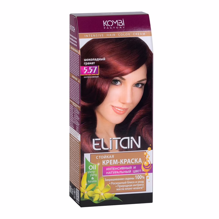 Входящее в состав краски масло иланг-иланга питает, восстанавливает волосы. Способствует стойкому закреплению пигмента по всей глубине коркового слоя. Устраняет посеченность и шероховатость волоса, тем самым улучшая его оптические свойства (блеск). Стойкая крем-краска Элитан Intensive Hair Color Cream содержит новую технологию окрашивания Brilliant Shine c масом ylang-ylang. Фотоны интенсивно отражаются от каждой микрочастицы пигмента, формируя сияющий блеск и обеспечивая полную цветопередачу.