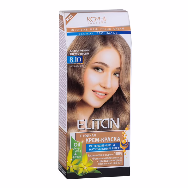 Входящее в состав краски масло иланг-иланга питает, восстанавливает волосы. Способствует стойкому закреплению пигмента по всей глубине коркового слоя. Устраняет посеченность и шероховатость волоса, тем самым улучшая его оптические свойства (блеск). Стойкая крем-краска Элитан Intensive Hair Color Cream содержит новую технологию окрашивания Brilliant Shine c масом ylang-ylang. Фотоны интенсивно отражаются от каждой микрочастицы пигмента, формируя сияющий блеск и обеспечивая полную цветопередачу.