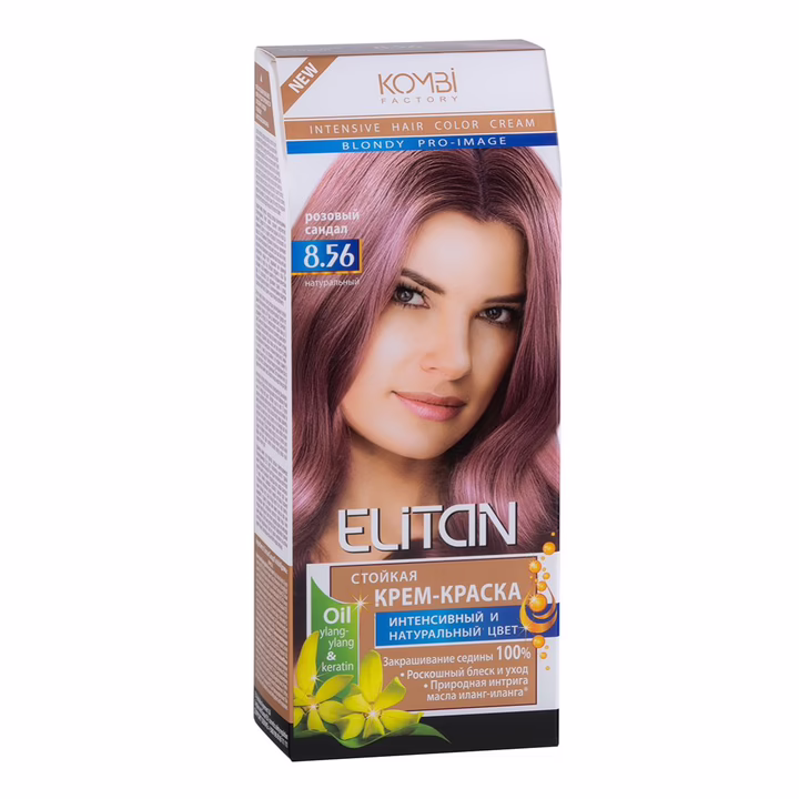 Входящее в состав краски масло иланг-иланга питает, восстанавливает волосы. Способствует стойкому закреплению пигмента по всей глубине коркового слоя. Устраняет посеченность и шероховатость волоса, тем самым улучшая его оптические свойства (блеск). Стойкая крем-краска Элитан Intensive Hair Color Cream содержит новую технологию окрашивания Brilliant Shine c масом ylang-ylang. Фотоны интенсивно отражаются от каждой микрочастицы пигмента, формируя сияющий блеск и обеспечивая полную цветопередачу.