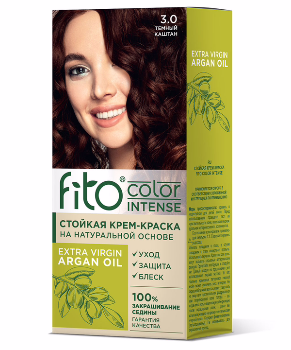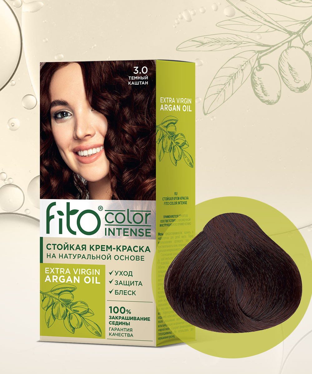 Стойкая крем-краска для волос "Fito Color Intense" содержит 90% ингредиентов натурального происхождения и самые современные стойкие пигменты, которые надежно закрашивают седину, обеспечивают стойкое окрашивание и естественный многогранный цвет.