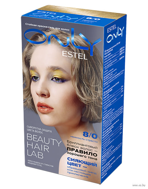 Упаковка содержит: флакон с краской-гелем, флакон-аппликатор с оксигеном, саше-пакет с маской, тубу с сывороткой-защитой цвета волос "Estel Beauty Hair Lab", перчатки.