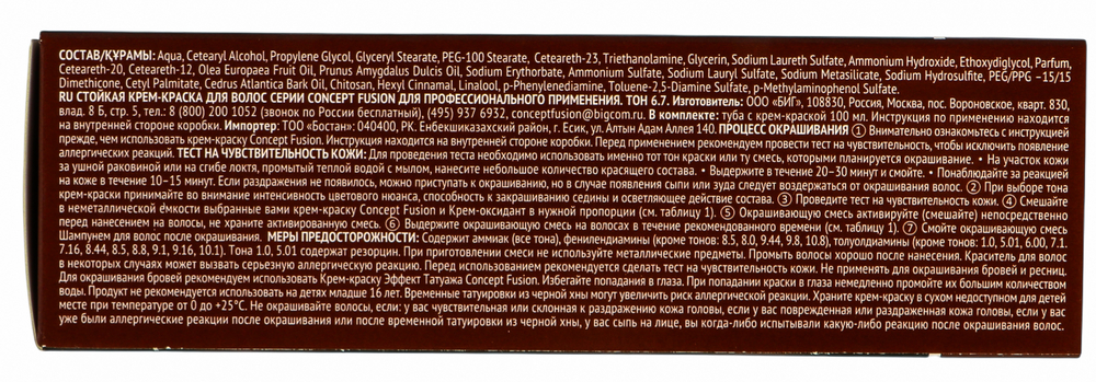 Внимательно ознакомьтесь с инструкцией, прежде, чем использовать крем-краску Concept Fusion.Состав